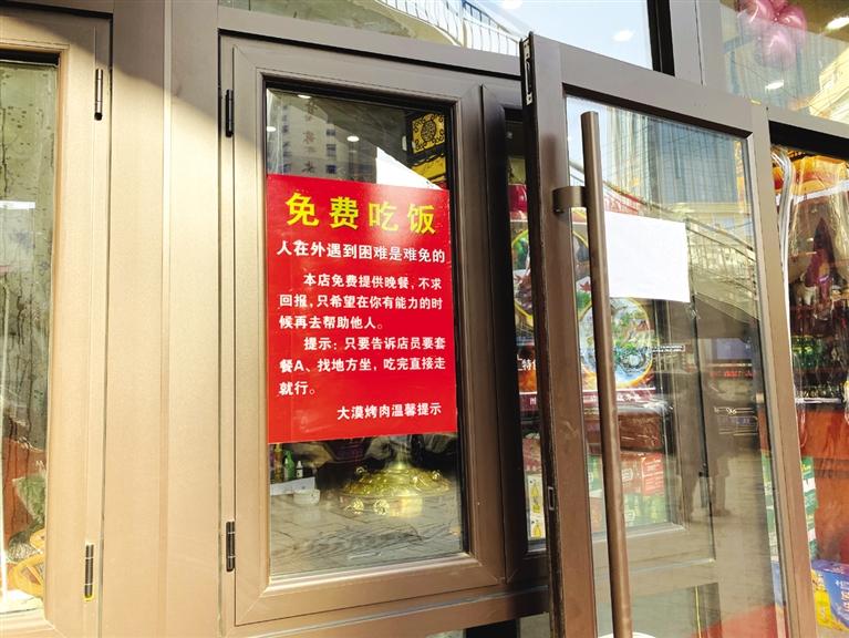 “更讓我感動的其實是大家。我們貼出‘溫馨提示’以來,沒有人故意上門蹭吃蹭喝,更沒有人上門搗亂。大家都在小心翼翼地保護著這份善心。”丁占東說,1月18日當(dāng)天,又有兩位身處窘境的人看到提示走進了店門。丁占東和同事們依然給他們端來了熱飯熱菜,請他們吃了頓飽飯。