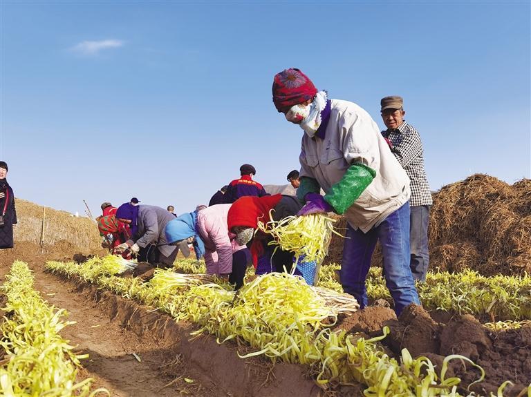 “今年地頭價(jià)每斤15元,韭黃價(jià)格逐年增長(zhǎng),村民收入持續(xù)增加,宣傳太重要了。”韭黃開(kāi)鐮節(jié)現(xiàn)場(chǎng),村民們把剛收割的韭黃擺在地頭銷(xiāo)售,慕名而來(lái)的“客人”圍攏過(guò)來(lái),村民把一捆捆金燦燦的韭黃過(guò)稱(chēng)、裝袋,接著到手的一疊疊鈔票。“給韭黃抖土感覺(jué)就像數(shù)錢(qián)一樣,嘿嘿,麥草下的‘黃金’今年又豐收了。”村民們你一言我一語(yǔ),爽朗的笑聲回蕩在冬日的余暉里。