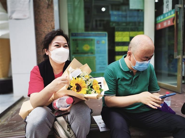 記者在等待的家長(zhǎng)群里來(lái)回穿梭,發(fā)現(xiàn)給孩子送鮮花的家長(zhǎng)可真不少,上前攀談,手捧向日葵的媽媽爽朗大方,她向記者解釋了送孩子向日葵的寓意:“我家的孩子是女孩,是蘭州一中的學(xué)生,我希望她考個(gè)好成績(jī)。向日葵的寓意就是‘一舉奪魁’。我們很緊張但是不敢表露出來(lái),不能把這種情緒傳導(dǎo)給孩子。送她花,就是為了讓她心情好一些。”