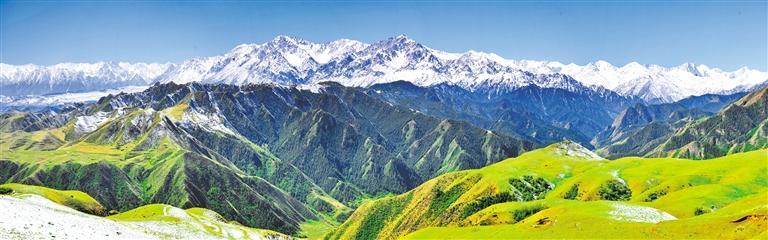 初秋的祁連山,碧空如洗,遠(yuǎn)峰疊翠。山頂?shù)姆e雪在陽(yáng)光照射下閃閃發(fā)光,陣陣清風(fēng)拂過(guò)黃綠交錯(cuò)的山林,驚起幾只飛鳥……