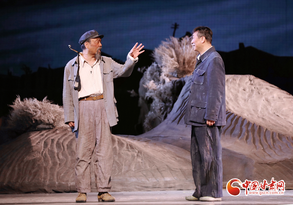 隨著演出大幕緩緩開啟,原甘肅省話劇院國家一級演員、國務院政府特殊津貼專家、中國戲劇表演梅花獎獲得者康愛石,國家一級演員、中國話劇“金獅獎”獲得者常貴順,國家一級演員、中國戲劇表演梅花獎獲得者祁寶泉等“老甘話人”,以生動的表演,藝術(shù)再現(xiàn)了年逾半百的“六老漢”卷起鋪蓋挺進八步沙,用愚公精神創(chuàng)造的綠色奇跡。
