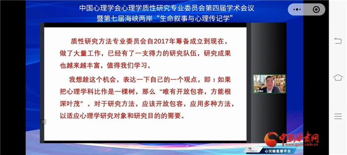 樂(lè)國(guó)安在回顧質(zhì)性心理學(xué)同仁們?cè)谶^(guò)去幾年的努力和取得的成績(jī)的基礎(chǔ)上,提醒大家,在方法的應(yīng)用上,要秉承開(kāi)放的態(tài)度,“唯有開(kāi)放包容,方能根深葉茂”。