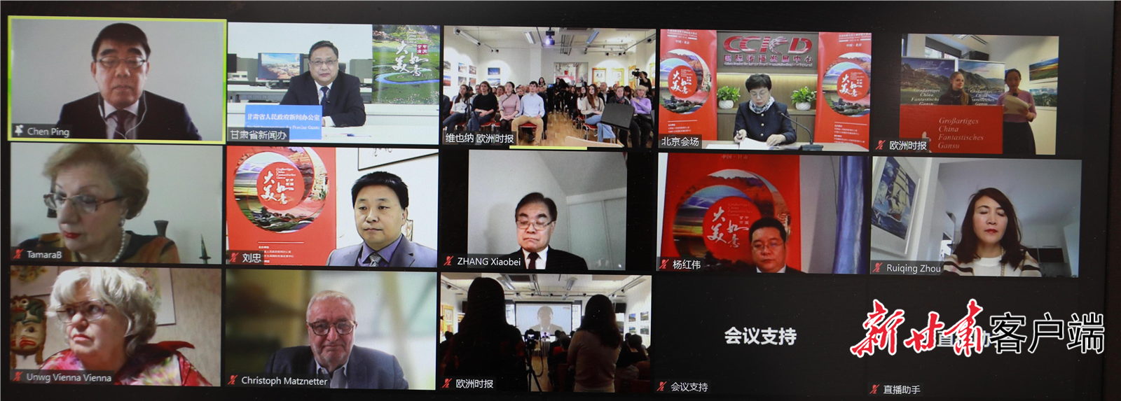 主題展開幕式上,甘肅省委宣傳部副部長(zhǎng)、省政府新聞辦主任郭錦詩致歡迎辭,并介紹主題展覽情況。中國駐奧地利大使館文化參贊陳平,維也納聯(lián)合國婦女協(xié)會(huì)主席桑迪亞·普瑞拉,中國外文局副總編輯、國際傳播發(fā)展中心主任陳實(shí),奧地利聯(lián)邦商會(huì)副主席克里斯托弗·馬茨內(nèi)特,歐洲時(shí)報(bào)文化傳媒集團(tuán)總裁,歐洲時(shí)報(bào)社社長(zhǎng)張曉貝出席開幕式并致辭。甘肅省委宣傳部副部長(zhǎng)、省政府新聞辦主任郭錦詩線上出席并宣布主題展開幕。