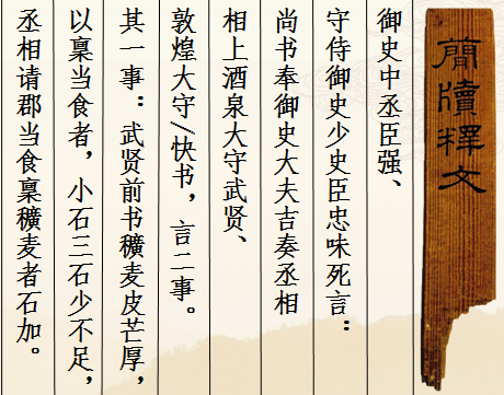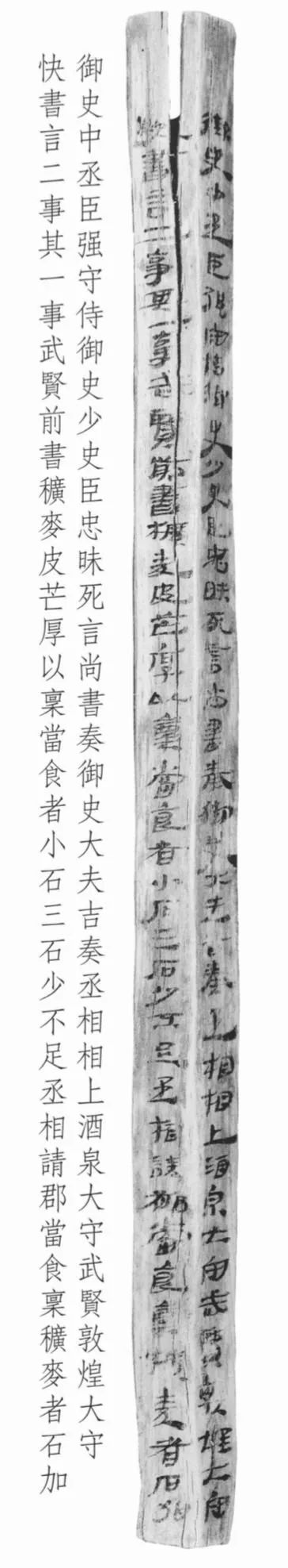 另?yè)?jù)張德芳先生考證,此簡(jiǎn)所言史實(shí)或與漢宣帝神爵年間對(duì)羌作戰(zhàn)有關(guān)。漢宣帝神爵元年(前61)西羌作亂,辛武賢被任命為破羌將軍,與敦煌太守快等發(fā)兵配合后將軍趙充國(guó)對(duì)羌作戰(zhàn),神爵二年(前60)羌事結(jié)束后辛武賢赴任酒泉太守。簡(jiǎn)文中稱辛武賢為“酒泉太守”,或許是神爵二年(前60)羌事結(jié)束后,辛武賢在面對(duì)平定西羌戰(zhàn)爭(zhēng)過程中發(fā)現(xiàn)的一些弊端諸如糧食發(fā)放不足數(shù)等問題向朝廷提出改善的建議。