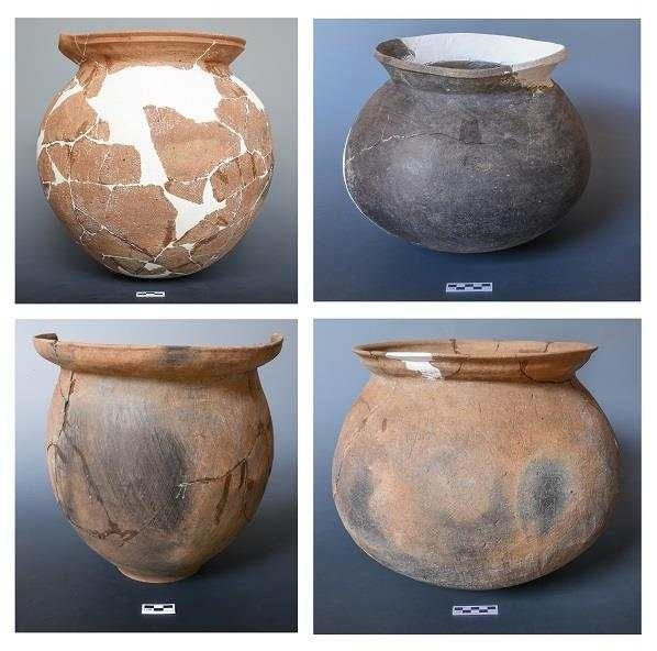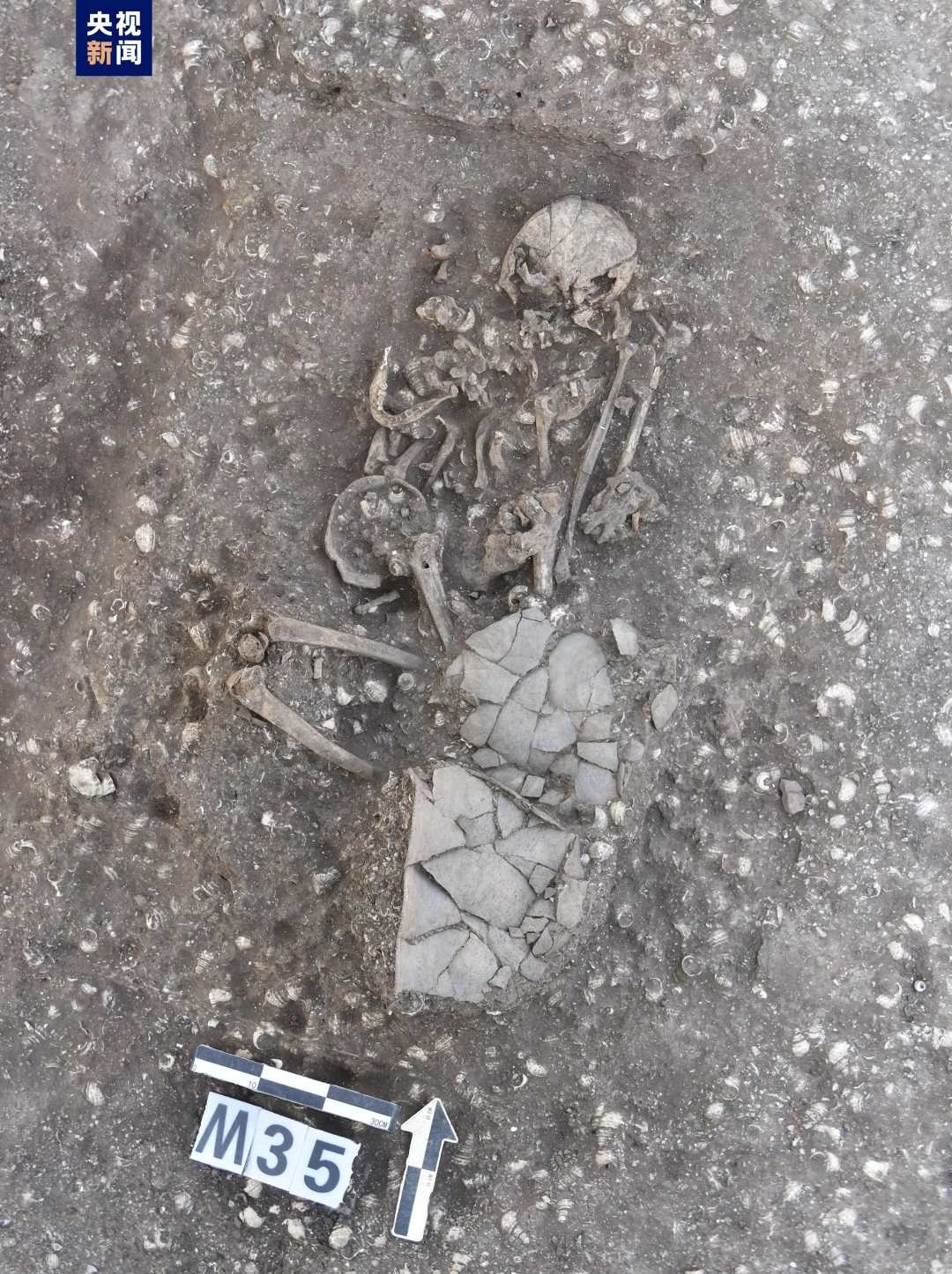 古城村遺址面積約4.2萬平方米,現(xiàn)存的貝丘堆積最厚處達(dá)6.5米,由大量尾部被敲破的螺螄殼與灰土層交替堆疊形成。碳十四測定年代為距今3600至2500年,約相當(dāng)于中原地區(qū)的商代至兩周時期。商代遺存可分為早晚兩段,早段發(fā)現(xiàn)保存完整的橢圓形環(huán)壕聚落,由中心臺地、外圍環(huán)壕和護(hù)坡組成,中心臺地面積約27000平方米,環(huán)壕和護(hù)坡周長約600米,這種聚落格局一直延續(xù)至兩周時期。商代晚段發(fā)現(xiàn)一批土坑墓和甕棺葬。兩周時期的遺存以房址、螺殼堆、灰燼、活動面等居住類遺跡為主,房址多為方形半地穴式。出土青銅器、陶器、玉器、石器、骨器、木器等文物4000余件。