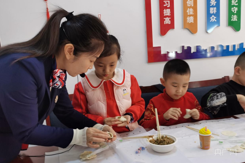 孩子們聽老師講傳統(tǒng)習俗體驗包餃子(央廣網(wǎng)發(fā) 唐欣 攝)