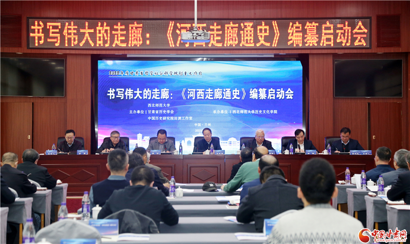 中國甘肅網(wǎng)3月11日訊(本網(wǎng)記者 程?。?月11日,書寫偉大的走廊:《河西走廊通史》編纂啟動會在蘭州召開,標志著這部擬由八卷構(gòu)成,共計400萬字,計劃2025年出版的史學巨制正式啟動編纂。甘肅省委宣傳部副部長、省新聞出版局(省版權(quán)局)局長王成勇出席啟動會并講話,西北師范大學黨委書記賈寧致辭。
