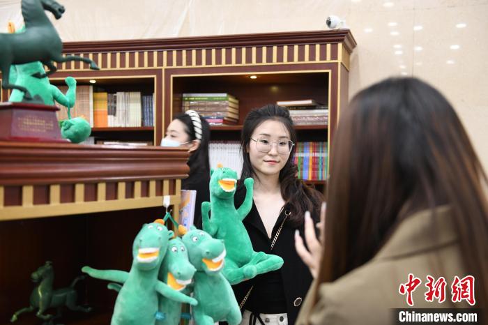 圖為游客在甘肅省博物館推出的文創(chuàng)產(chǎn)品前合影留念,留下美好瞬間。戴文昌攝
