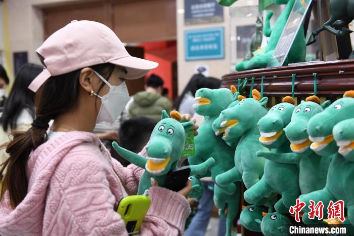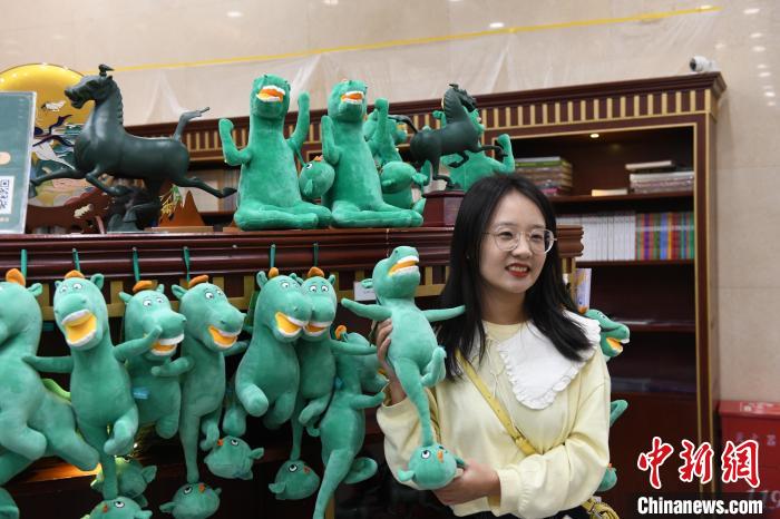 3月26日,甘肅蘭州,絲路旅游持續(xù)升溫,甘肅省博物館推出的文創(chuàng)產(chǎn)品“綠馬”惹游客“愛不釋手”,讓游客流連忘返。