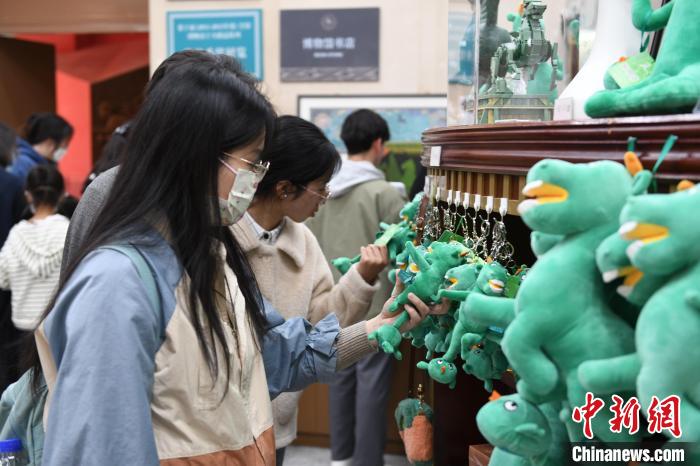 圖為游客對(duì)甘肅省博物館推出的文創(chuàng)產(chǎn)品“綠馬”愛不釋手。戴文昌攝