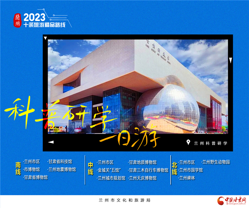 6.蘭州科普研學(xué)1日游。蘭州博物館有很多,可謂是品類齊全。綜合類博物館如省博、市博自不用說,中國旅游標志“馬踏飛燕”原件陳列真的不想去看看?各類專門博物館也是非常齊全,秦腔博物館、黃河橋梁博物館、城市規(guī)劃館、自行車博物館、地震博物館等……“蘭州科普研學(xué)1日游”三條線,分別為南線、中線和北線。