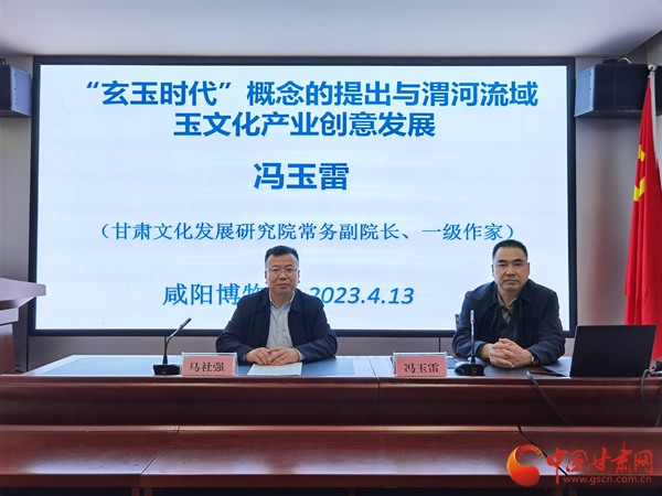 中國甘肅網(wǎng)4月13日訊 為進一步促進博物館學(xué)術(shù)研究交流創(chuàng)新,激發(fā)博物館發(fā)展活力,持續(xù)推動博物館高質(zhì)量發(fā)展,陜西咸陽博物院于4月13日下午3點舉辦第二期“咸博大講堂”專題講座,甘肅文化發(fā)展研究院常務(wù)副院長、一級作家馮玉雷作了題為《“玄玉時代”概念的提出與渭河流域玉文化產(chǎn)業(yè)創(chuàng)意發(fā)展》的學(xué)術(shù)報告。咸陽博物院院長馬社強主持講座。
