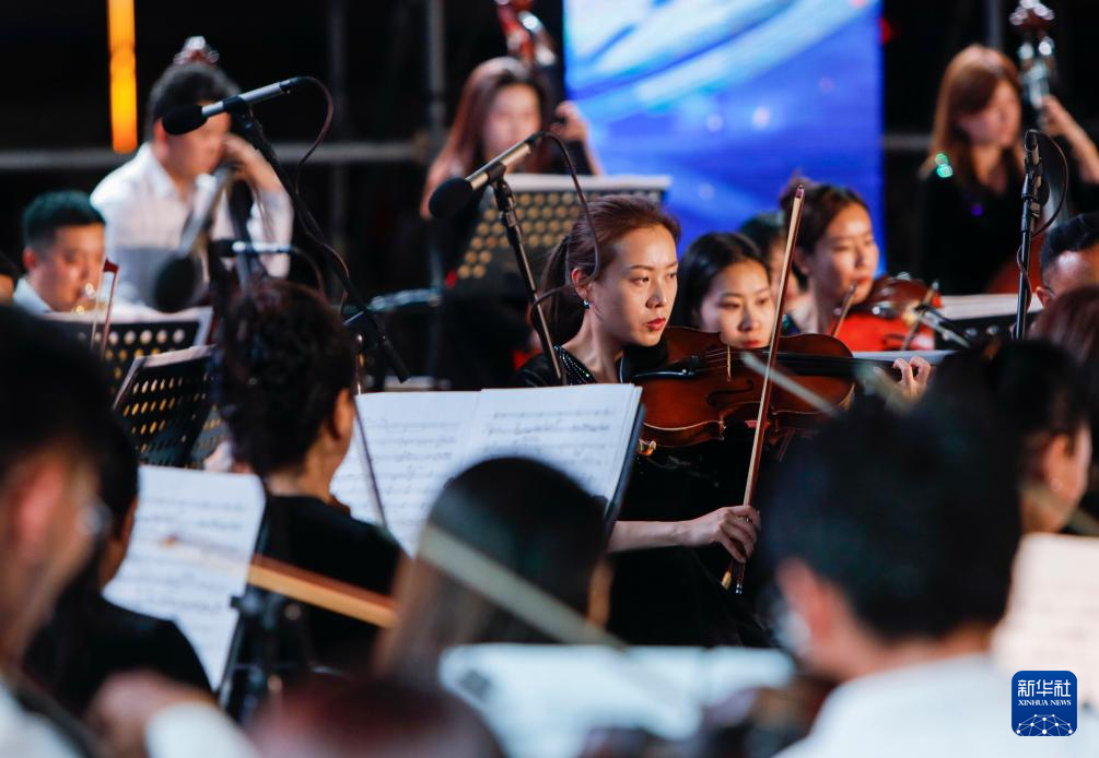 7月31日,來自甘肅省歌劇院、甘肅交響樂團(tuán)的演奏者們?cè)诒硌莨?jié)目。新華社記者 方欣 攝