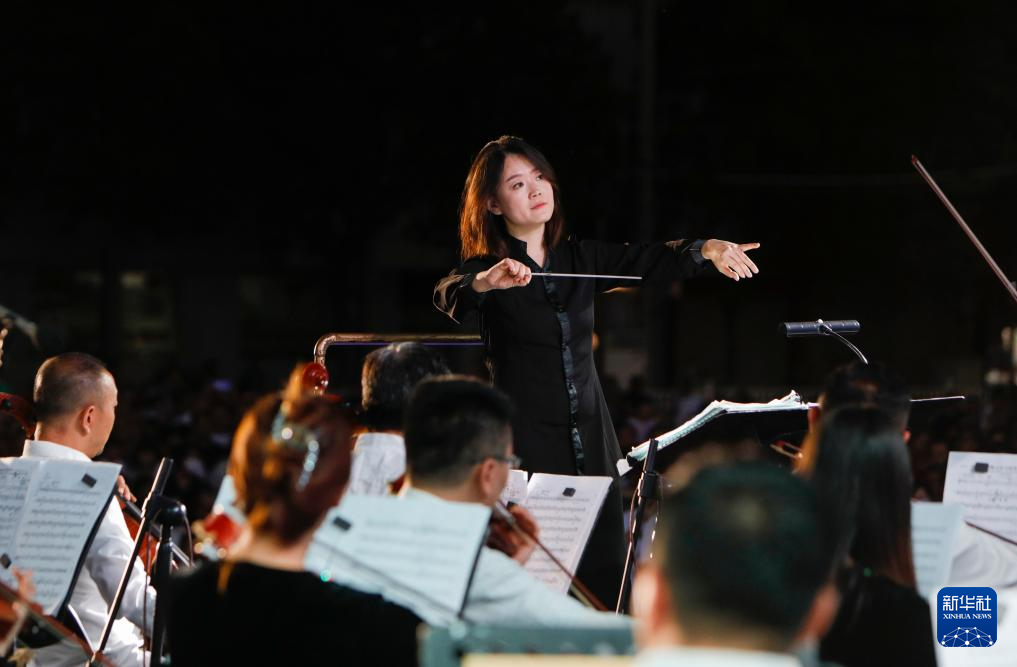 7月31日,甘肅交響樂團(tuán)首席指揮王璐在指揮演奏。新華社記者 方欣 攝