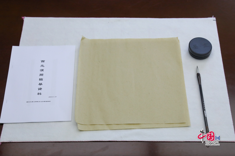 蘭州大學(xué)古文字學(xué)強(qiáng)基計(jì)劃同學(xué)臨摹簡(jiǎn)牘所用的資料與文具(拍攝于7月31日)。中國(guó)網(wǎng)記者 鄭偉 攝