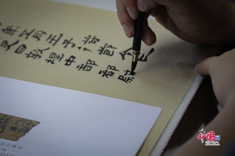 7月31日,蘭州大學(xué)古文字學(xué)強(qiáng)基計(jì)劃同學(xué)正在臨摹簡(jiǎn)牘。中國(guó)網(wǎng)記者 鄭偉 攝