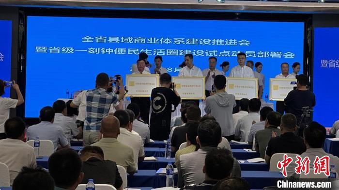 8月3日,甘肅省縣域商業(yè)體系建設(shè)推進(jìn)會(huì)暨省級一刻鐘便民生活圈建設(shè)試點(diǎn)動(dòng)員部署會(huì)在蘭州舉行。甘肅省商務(wù)廳為第二批“省級示范步行街”和“甘肅老字號”授牌。中新社記者 馮志軍 攝