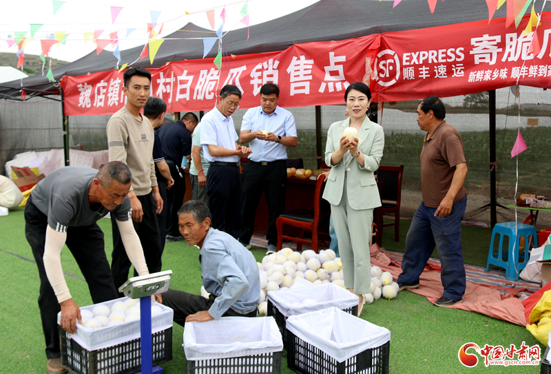 2023年,秦安縣委、縣政府把培育發(fā)展白脆瓜作為促進(jìn)秦安農(nóng)民增收的又一重要抓手后,她充分發(fā)揮擁有一定的銷售市場(chǎng)的特長(zhǎng),積極進(jìn)行市場(chǎng)推介,引導(dǎo)群眾大力發(fā)展白脆瓜產(chǎn)業(yè),成功將秦安白脆瓜打入蘭州國際高原夏菜市場(chǎng),為群眾鋪開了一條白脆瓜的熱銷路,幫助群眾銷售白脆瓜16萬斤,銷售額達(dá)160萬元以上,不僅解決了魏店及周邊5個(gè)鄉(xiāng)鎮(zhèn)群眾白脆瓜的銷售問題,更為群眾進(jìn)一步發(fā)展白脆瓜產(chǎn)業(yè)增強(qiáng)了信心。