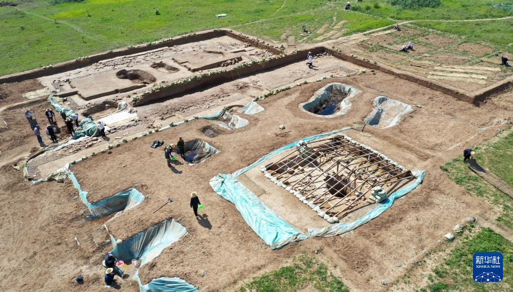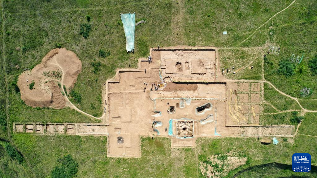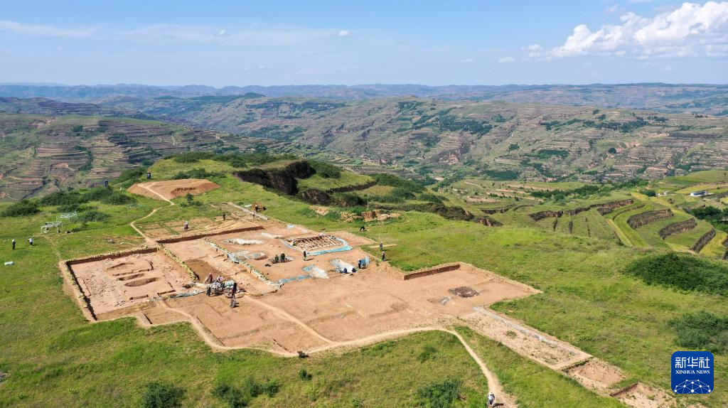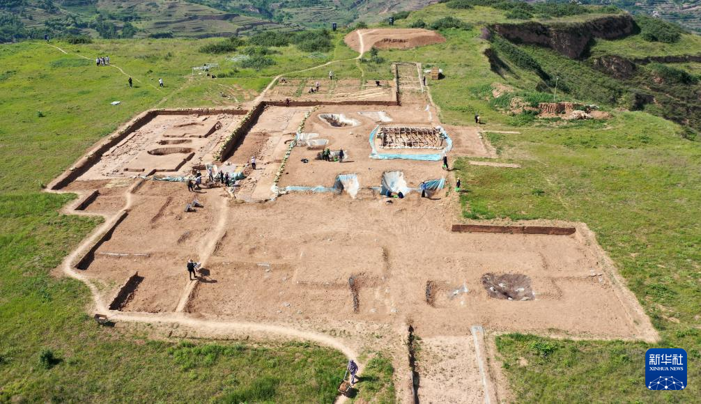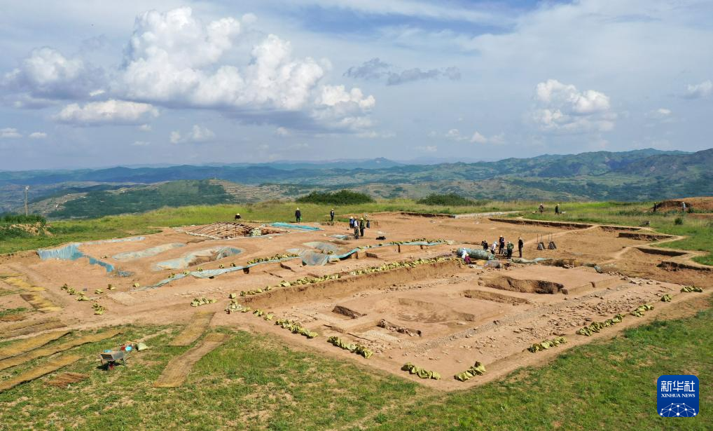 這是2022年6月10日拍攝的甘肅省隴南市禮縣四角坪遺址考古發(fā)掘現(xiàn)場(無人機照片)。新華社記者 陳斌 攝