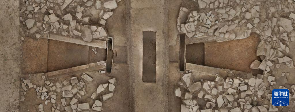 這是甘肅省隴南市禮縣四角坪遺址的排水設(shè)施(2024年1月8日攝,無人機照片)。新華社發(fā)(四角坪遺址考古隊供圖)