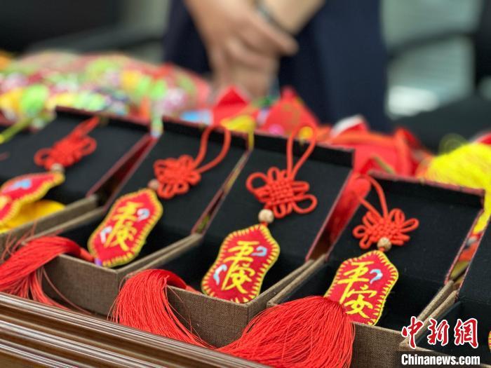 5月7日,“甘肅省2024年‘文化和自然遺產(chǎn)日’非遺宣傳展示展銷主會場系列活動暨第十九屆慶陽香包民俗文化節(jié)”新聞發(fā)布會舉行。圖為發(fā)布會現(xiàn)場展示的香包制品。楊娜 攝