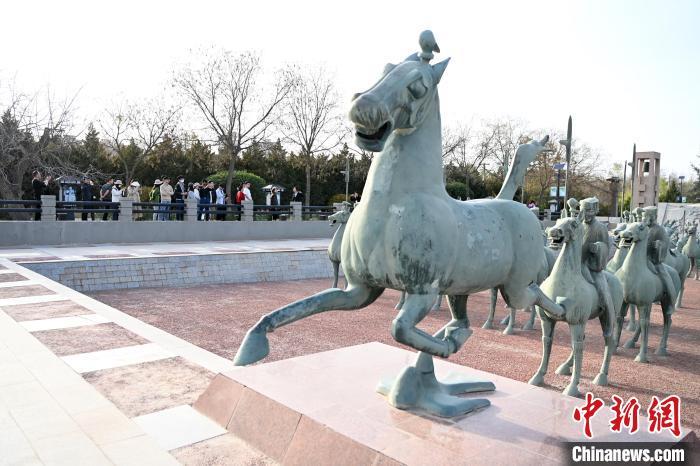 2024年4月17日,游客在中國(guó)旅游標(biāo)志“馬踏飛燕”出土地雷臺(tái)漢墓內(nèi)參觀。九美旦增 攝
