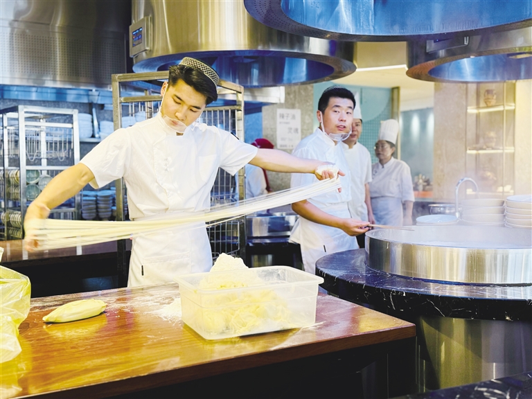百舸爭(zhēng)流,千帆競(jìng)渡。當(dāng)下,蘭州牛肉拉面行業(yè)紛紛在提質(zhì)升級(jí),更新迭代。近段時(shí)間以來(lái),蘭州牛肉拉面行業(yè)的后起之秀——周達(dá)·觀金城精品牛肉面店成為不少市民游客網(wǎng)紅打卡地標(biāo)。目前蘭州市內(nèi)有牛肉拉面館1280余家,周達(dá)·觀金城精品牛肉面品牌于三年前確立,短短的三年時(shí)間里,它是怎么做到在眾多牛肉拉面店中脫穎而出的?它到底有什么特色?和蘭州其他的老字號(hào)牛肉拉面到底有什么不一樣??jī)?yōu)勢(shì)在哪里?帶著這一系列的疑問(wèn),8月28日,記者走進(jìn)周達(dá)·觀金城精品牛肉面店一探究竟。