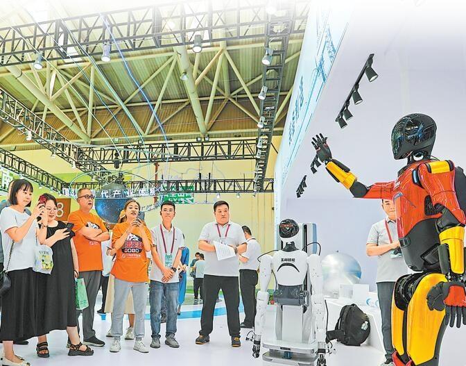 蘭州館內(nèi),參觀者與機(jī)器人展開互動(dòng)。本組圖片攝影:新甘肅·甘肅日?qǐng)?bào)記者 田蹊