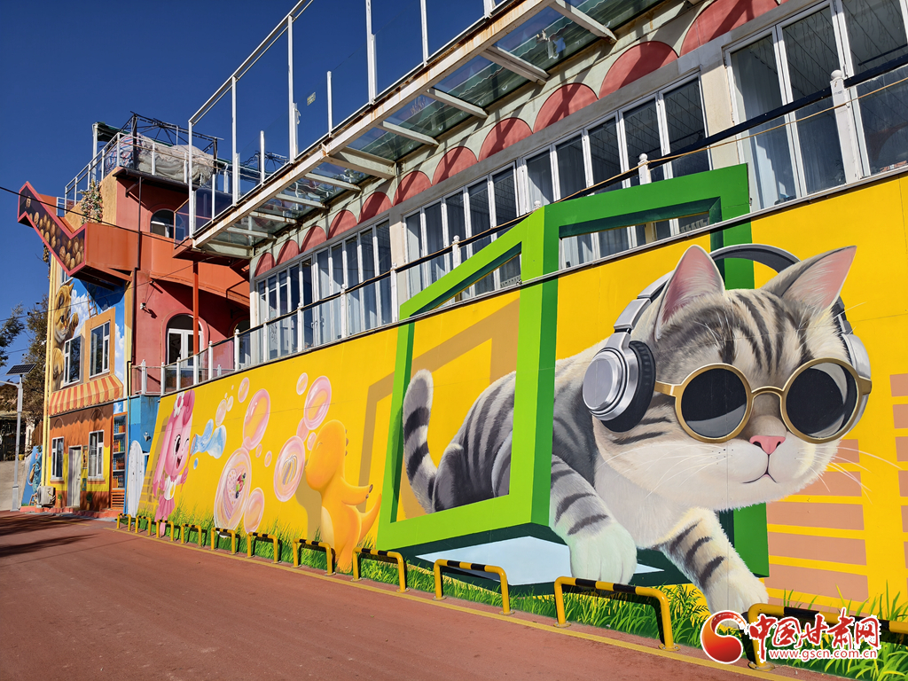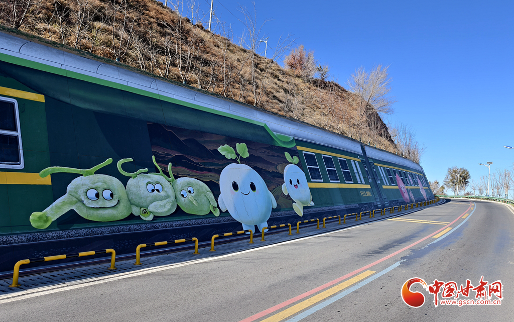 初冬蘭州蘭山,涼意漸濃,“煙雨蘭山”鄉(xiāng)村振興示范帶的童話彩繪卻讓這里成了市民的“造夢秘境”。低成本的藝術(shù)改造點(diǎn)亮墻面,連“0931號(hào)”蒸汽火車手繪也在此煥發(fā)光彩——車頭暖光里,Q版蘭州瓜果、土撥鼠串聯(lián)成列,宛如“童話專列”載著鄉(xiāng)愁與特產(chǎn)故事,邀人走進(jìn)山間童話。