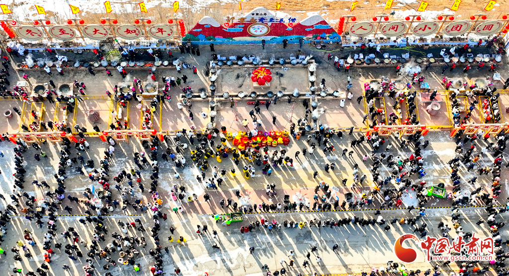 12月21日正值冬至,2025年甘肅省“四季村晚”(張掖)冬季示范展示暨山丹冬至民俗文化活動在山丹縣清泉鎮(zhèn)祁店村文化廣場啟幕?;顒蝇F(xiàn)場,祁店村村民為前來參與的數(shù)萬名游客與市民準備了冬至節(jié)必吃的名小吃“牛娃子飯”,并呈上舞龍舞獅、民俗社火、文藝節(jié)目、秦腔大戲等精彩演出。非遺傳承人還在現(xiàn)場展示了手工藝編織、山丹花饃制作等技藝,讓游客在觀賞、體驗與互動中,沉浸式感受“冬至大如年”的傳統(tǒng)民俗魅力。