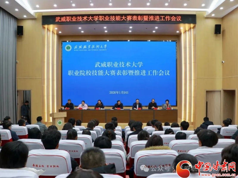 中國甘肅網(wǎng)1月11日訊(西北角·中國甘肅網(wǎng)記者 張振國)1月9日,武威職業(yè)技術(shù)大學(xué)召開職業(yè)院校技能大賽表彰暨推進(jìn)工作會議。黨委書記王宏出席會議并講話。在家校領(lǐng)導(dǎo)班子成員、各學(xué)院(部)及職能部門負(fù)責(zé)人、獲獎師生代表以及備戰(zhàn)2026年大賽的師生代表共同參會。校長李海軍主持會議。