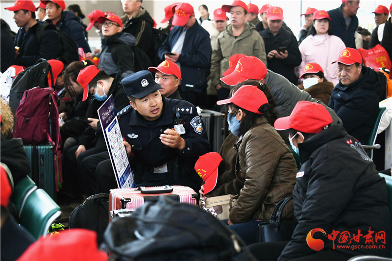這批務(wù)工人員來自定西市各縣區(qū),既有復(fù)崗務(wù)工人員也有新聘崗務(wù)工人員,為鋪就這條溫暖返崗路,蘭州鐵路公安處定西北站派出所積極與定西北車站、客運部門通聯(lián),專門開辟綠色通道,暢通進站、安檢、檢票等進站環(huán)節(jié),劃定專門候車進站區(qū)域,同時,增派警力逐一引導務(wù)工人員有序進站,幫助提拿大件行李,講解防范電信詐騙小妙招,進一步保障了務(wù)工團體旅客乘車安全。