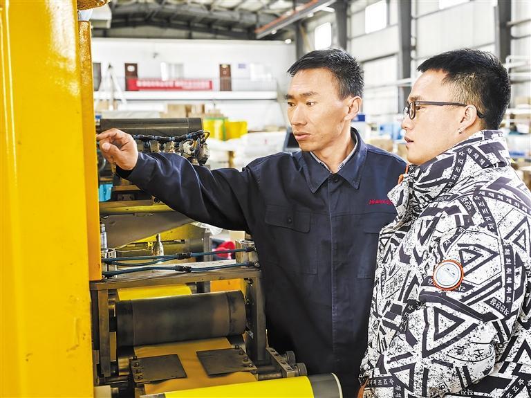 科技專員劉生壽(左)與甘肅盈騰節(jié)能科技有限公司技術(shù)負(fù)責(zé)人趙文強(qiáng)在討論工作。本版圖片攝影:新甘肅·甘肅日報記者 吳涵