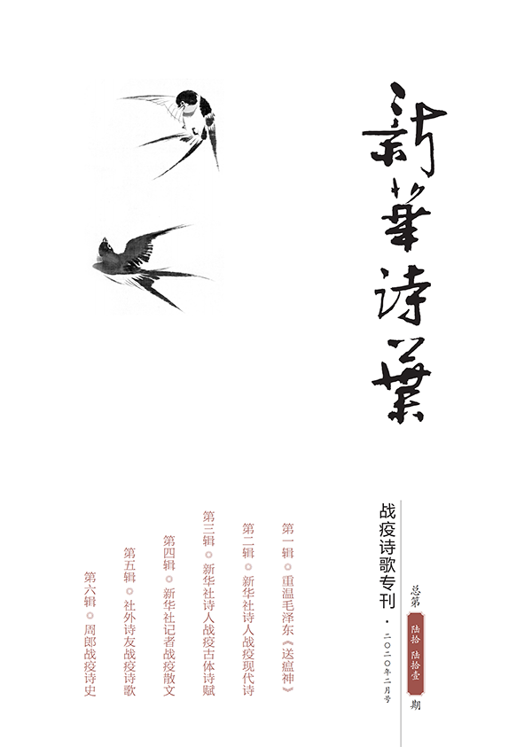 《戰(zhàn)疫詩歌??肥窃谛氯A社原副社長何東君,原社黨組成員、秘書長張錦的共同倡議策劃和組織指揮下,在較短時間內(nèi)高效率、高質(zhì)量完成的。這本??襁_(dá)140多頁,共由六大單元組成。其中,第一輯開篇重溫毛澤東《送瘟神》,由何東君撰文回顧新中國戰(zhàn)勝血吸蟲病的悲壯歷史,以期為今日抗擊疫情汲取戰(zhàn)天斗地的民族精神力量;第二、第三輯分別刊登新華社記者編輯們抗疫主題的現(xiàn)代詩和古體詩,風(fēng)格或豪放雄渾,或沉郁含蓄;最后一輯是周郎戰(zhàn)疫詩史專輯,專門刊登新華社高級編輯周清印的180首原創(chuàng)抗疫題材詩詞,彰顯對中華詩史傳統(tǒng)基因的繼承創(chuàng)新。