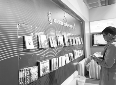 在今年的北京圖書訂貨會上,讀者在中文傳媒年度好書展墻前駐足。