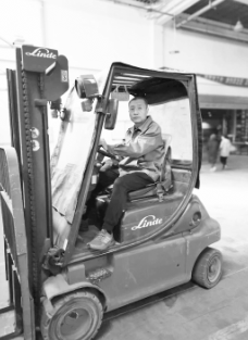 馬曉峰駕駛叉車搬運圖書。