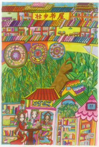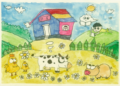 面對(duì)這部由中國(guó)少年兒童新聞出版總社出版的《“我的書屋·我的夢(mèng)”——2019年農(nóng)村少年兒童閱讀實(shí)踐活動(dòng)優(yōu)秀作品集》,讓人欣喜的是,它不但有文字,還有很多入選的畫作,孩子們運(yùn)用了大膽的色彩、大膽的想象、大膽的線條,恣肆地描繪著他們的夢(mèng)和憧憬,這些夢(mèng)根植于他們生活的山鄉(xiāng)曠野,又呼應(yīng)著遠(yuǎn)方、星辰與大海。我尤其記得其中的一幅,那是一座高聳的書塔,那種拔地而起、直上云霄的氣勢(shì),是一種象征,是一種隱喻,是這一代孩子想站到巨人肩上的渴望,是他們對(duì)祖國(guó)明天最美好的祝福和期待,也是中華民族必將走向復(fù)興的昭示。