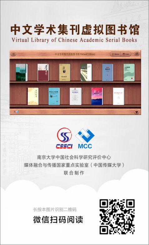 近年來,南京大學中國社會科學研究評價中心積極加強與國內(nèi)媒體融合教學科研機構(gòu)的合作,力求通過媒體融合技術(shù)以更廣的傳播范圍、更及時的傳播時效和更靈活的互動交流方式傳播高質(zhì)量學術(shù)內(nèi)容,貼近學界,服務學界,彰顯作為學術(shù)發(fā)展“記錄者”的責任與擔當。中國社會科學研究評價中心負責人認為,“中文學術(shù)集刊虛擬圖書館”是順應學術(shù)傳播方式新變化、媒體融合發(fā)展新趨勢作出的探索性嘗試,是CSSCI奮進新時代、實現(xiàn)高質(zhì)量發(fā)展、服務學術(shù)研究的創(chuàng)新舉措。相信只要有關(guān)各方協(xié)力同行,一定能構(gòu)建成一個包括作者、編者、讀者和出版機構(gòu)在內(nèi)的充滿活力的數(shù)字生態(tài)共同體。(付文)