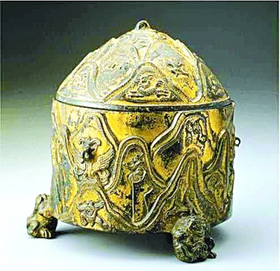 東漢銅鎏金山紋獸足樽,現(xiàn)藏于臺北故宮博物院 資料圖片