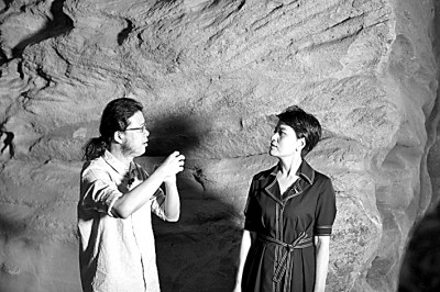 主講人王南(左)與主持人張小琴在云岡石窟現(xiàn)場交流。