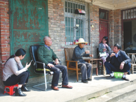 劉道云(右一)為寫作《第一書記:精準(zhǔn)扶貧的“一線戰(zhàn)斗員”》,深入基層一線傾聽(tīng)群眾心聲。