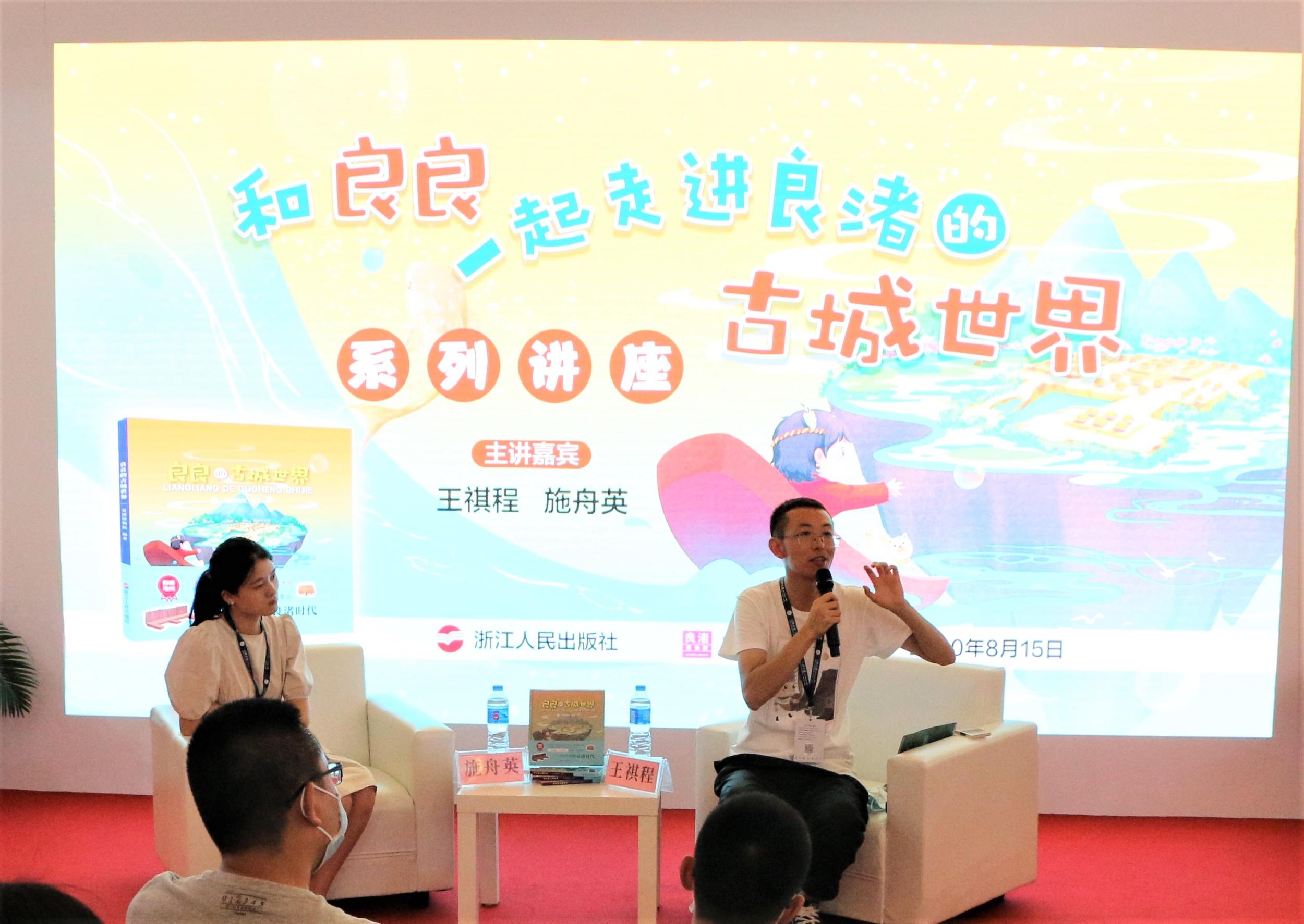 現(xiàn)場,王祺程與施舟英生動地講述了良渚文化與良渚古城的概況,并分享了“良良”系列繪本背后的故事。