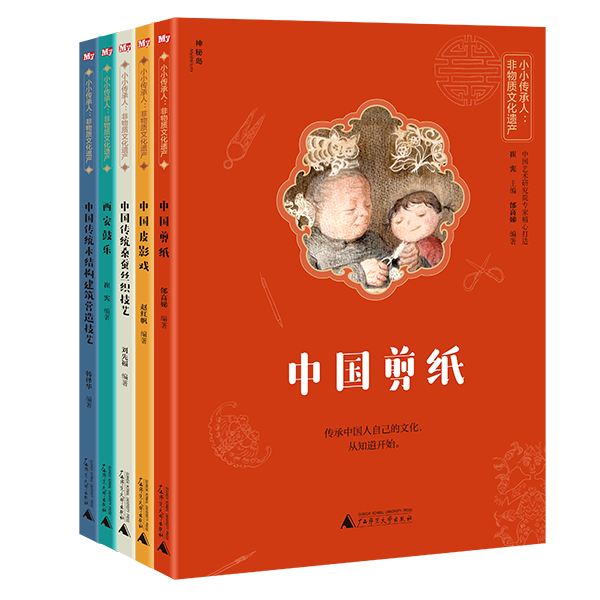 奶奶炕頭的窗花,皮影勾勒的世界,吳儂軟語縈繞的絲綢,故宮雄偉的大殿,穿越千年的鼓韻……“小小傳承人:非物質(zhì)文化遺產(chǎn)”系列傳統(tǒng)文化讀本日前推出第一輯,包括《中國剪紙》《中國皮影戲》《中國傳統(tǒng)桑蠶絲織技藝》《西安鼓樂》《中國傳統(tǒng)木結(jié)構(gòu)建筑營造技藝》五本。