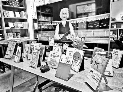 書店正中擺放著一個巨大的電視屏幕,正在循環(huán)播放著卓別林的喜劇電影《城市之光》經(jīng)典片段,屏幕前面擺放著各類被重點推薦的新書。“這本《笑的科學(xué)》是比較有學(xué)術(shù)性的書;這本《我思故我笑》,是講哲學(xué)和幽默的書;這本《世界上最壞的貓》,我們還為它搭配了一個黑貓玩具,這樣看起來比較吸引人。”書店主理人豈航向北青報記者介紹道,
