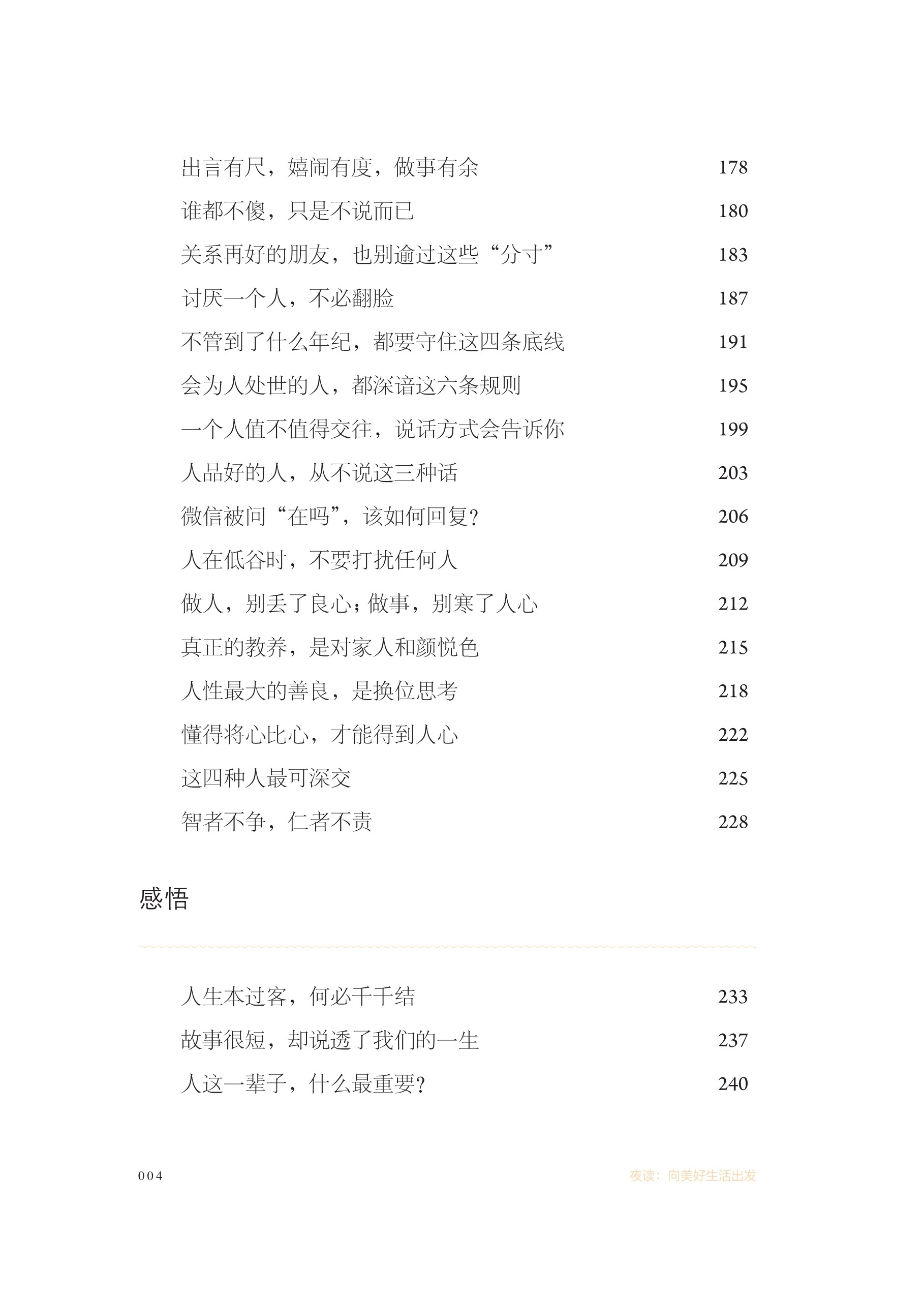 本書精選了新華社“夜讀”欄目五年來的近百篇文章,涵括親情、友情、成長、修養(yǎng)等多個話題,通過小視角身邊事給讀者帶來人生的感悟與啟迪,幫助讀者培養(yǎng)正確的價值取向和良好的品德修養(yǎng)。文章均配有專業(yè)主播朗讀,以優(yōu)質聲音演繹精品內容,讓讀者體驗更多與書相伴的方式,是送給新時代青年的一本有溫度的書籍。