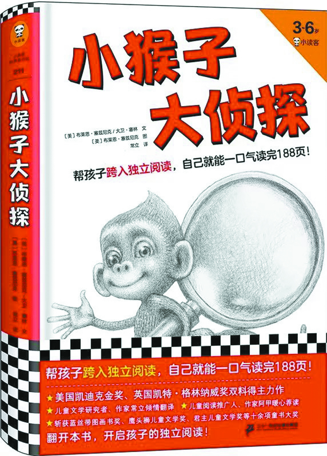 《小猴子大偵探》是本“欺騙性”很強(qiáng)的書,第一次讀到時(shí),我真的被騙到了!聽說是《造夢(mèng)的雨果》作者的新作,我完全沒理會(huì)這本書的介紹,就迫不及待地翻開來。好家伙,共有5章,差不多200頁,我心想,總得一兩個(gè)小時(shí)才能讀完吧。正當(dāng)我擺開架勢(shì),準(zhǔn)備好好享受童書鬼才塞茲尼克和塞林的新作時(shí),翻著翻著,大概六七分鐘吧,嗯——居然就翻到了最后一頁!天哪,我當(dāng)時(shí)想,這是怎樣的一本書啊!不對(duì),這真的是一本書嗎?