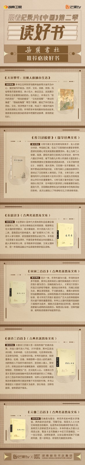 與此同時,紀(jì)錄片《中國》第二季也在湖南新華書店的全省各門店覆蓋宣傳,書友可以通過新華書店,遇見“中國高水平出版物,遇見美好中國”。