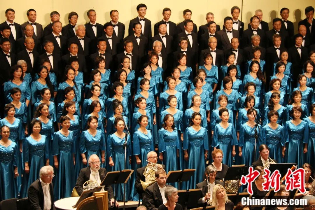 2015年8月,美國舊金山灣區(qū)華人合唱團在硅谷弗林特表演藝術中心演唱《黃河大合唱》。中新社記者 劉丹 攝