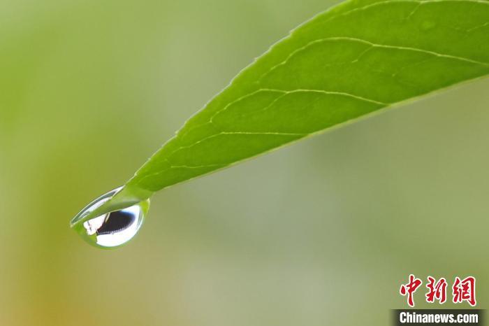 資料圖:樹(shù)葉上的雨滴晶瑩剔透。泱波 攝