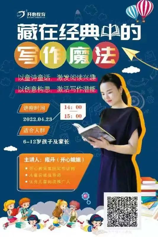 書香潤校園·一堂開心讀寫魔法課,以童詩童話,激活孩子的閱讀興趣以創(chuàng)意構(gòu)思,激活孩子的寫作潛能快來掃碼預(yù)約直播吧。